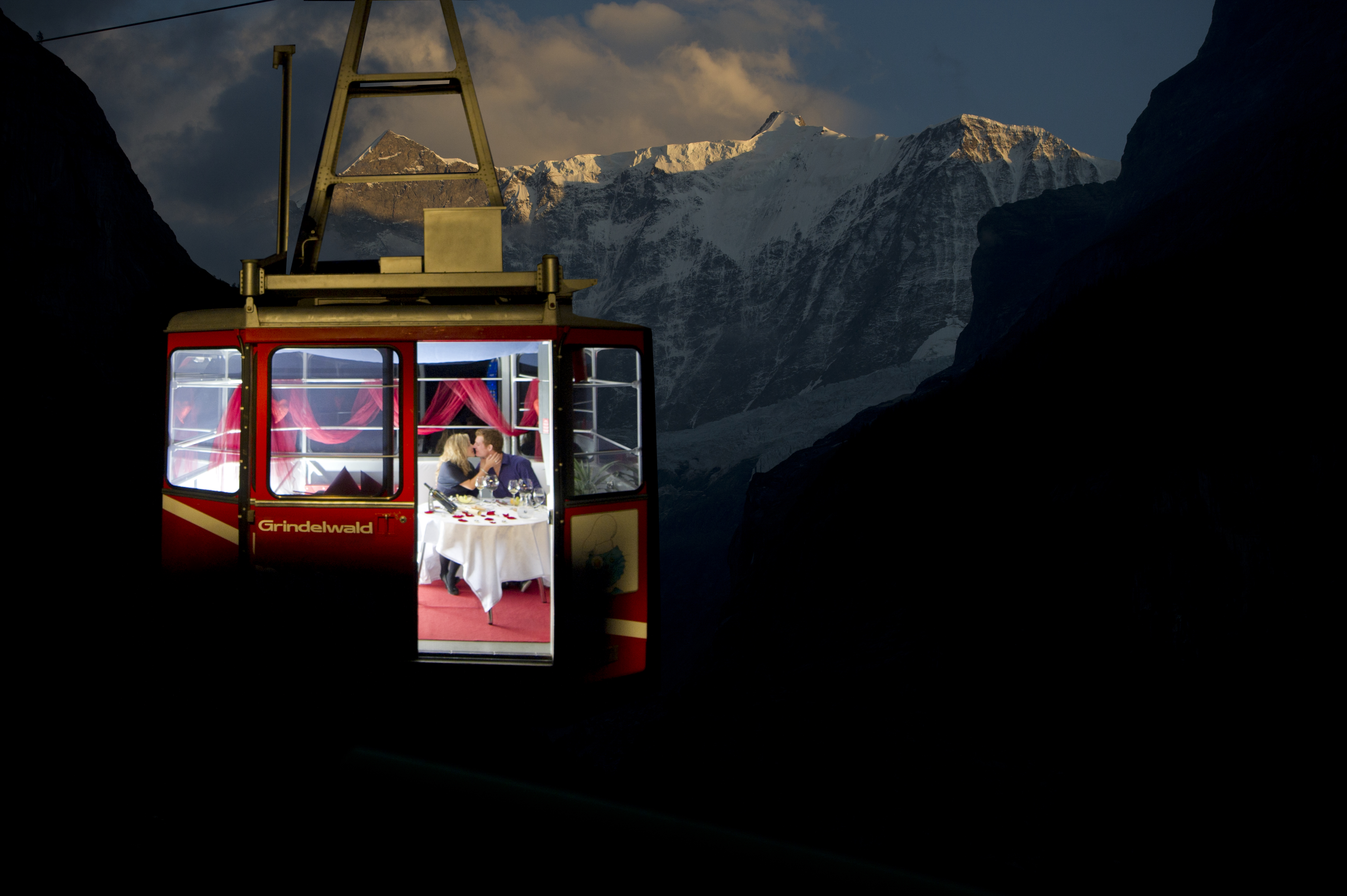 Die Pfingsteggbahn bietet Ihnen mit dem Candlelight Dinner in der Gondel eine absolut exklusive Möglichkeit, einen romantischen Abend mit Ihrer Liebsten / Ihrem Liebsten zuerleben. Ob es nun einen Heiratsantrag geben soll, oder einen Geburtstag zu feiern: romantischer als bei uns geht es kaum! In der romantisch eingerichteten Gondel (Blauer Himmel, rote Vorhänge, roter Teppich, Rosen, Couch, elektrische Kerzen, Musik, usw.) schweben Sie, das Apéro geniessend, in langsamer Fahrt zur Pfingstegg und zurück. In der Talstation angekommen, servieren wir Ihnen den Hauptgang (Rindsfilet auf dem heissen Stein, optional Käsefondue). Anschliessend fahren wir Sie an den schönsten Platz auf der Strecke und lassen Sie in Ruhe speisen. Etwa 30 Minuten später holen wir Sie wieder in die Talstation wo wir Sie mit dem Dessert, einem Kaffee und einem Schnaps bedienen. Dieses geniessen Sie erneut bei einer langsamen Fahrt durch die hereinbrechende Nacht.